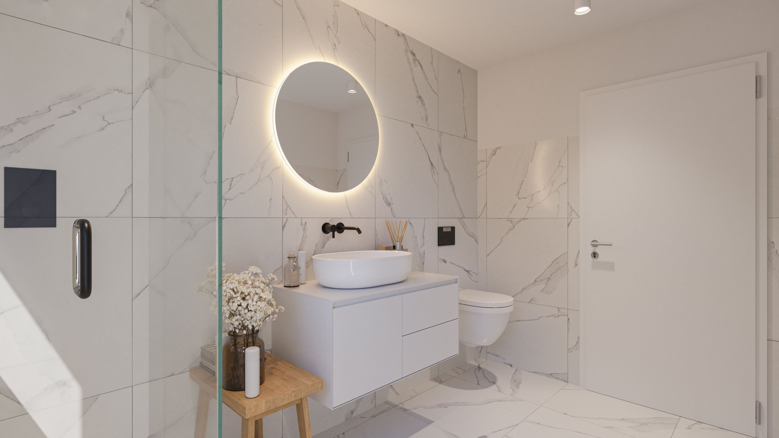 Fotorealistische Außenvisualisierungen sowie stimmungsvolle Innenansichten sind der Kern der Vermarktung. Sie helfen dabei, Vertrauen und Identifikation zu fördern, und vermitteln ein realistisches Bild davon, wie das Wohnen in der Zukunft sein wird, lange bevor die ersten Bauarbeiten beginnen.