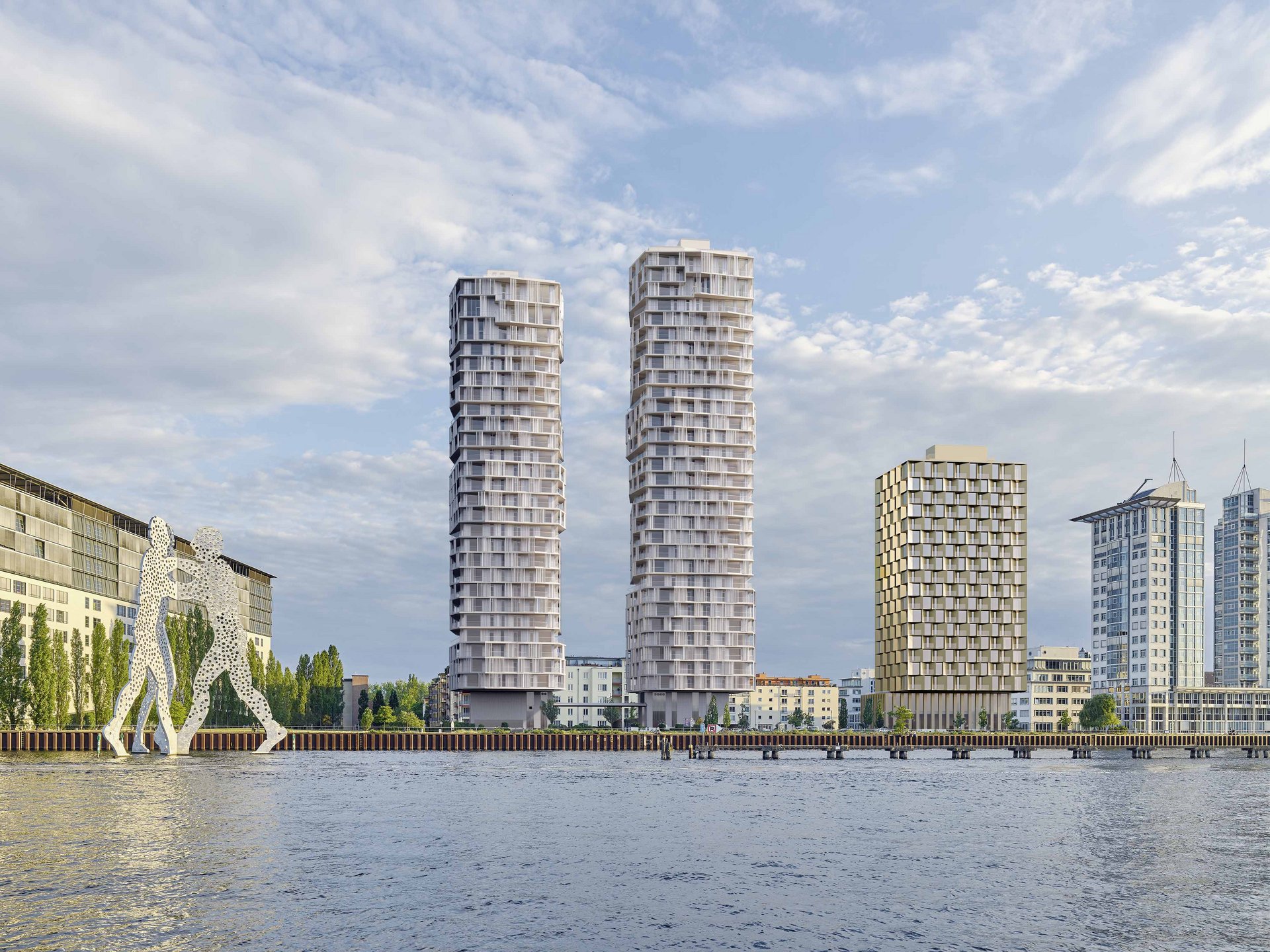 In Berlin-Treptow entsteht mit „The Molecules“ ein prägnantes Hochhausensemble direkt an der Spree. gmsvision unterstützte das Projekt von den ersten Schritten der Fassadenentwicklung bis zur endgültigen Vermarktungsvisualisierung. Zusätzlich zu stimmungsvollen Außenperspektiven wurde ein umfassender Projektfilm erstellt, der aus 3D‑Animationen besteht und durch Realaufnahmen des Unternehmens TVN ergänzt wird.
